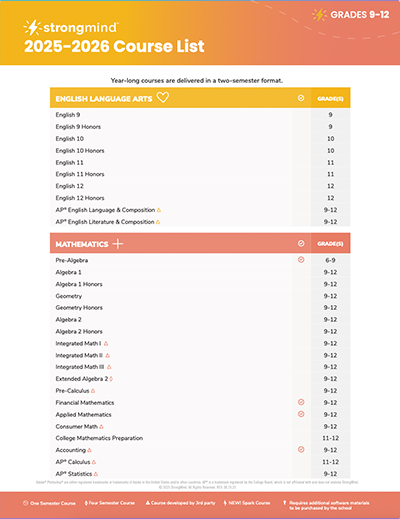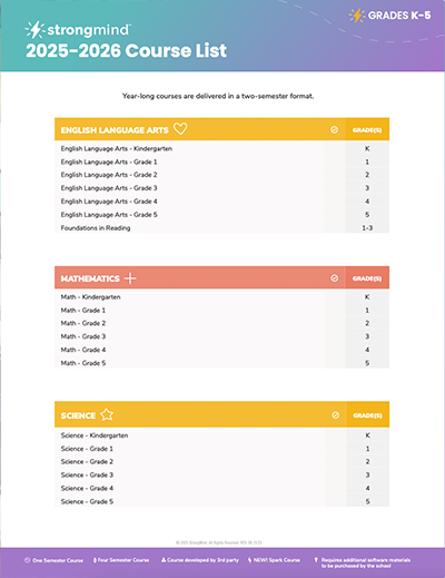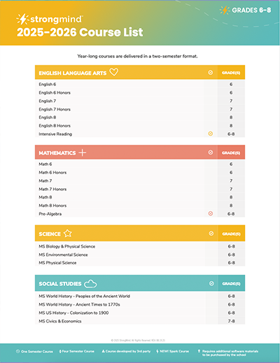 Designed specifically for virtual, hybrid, and blended learning, StrongMind courses for K-12 are Digital Promise certified and Quality Matters approved. They provide flexibility to support your local innovation, teacher tools to bolster effective instruction and use pedagogy based in learning science to boost student achievement.